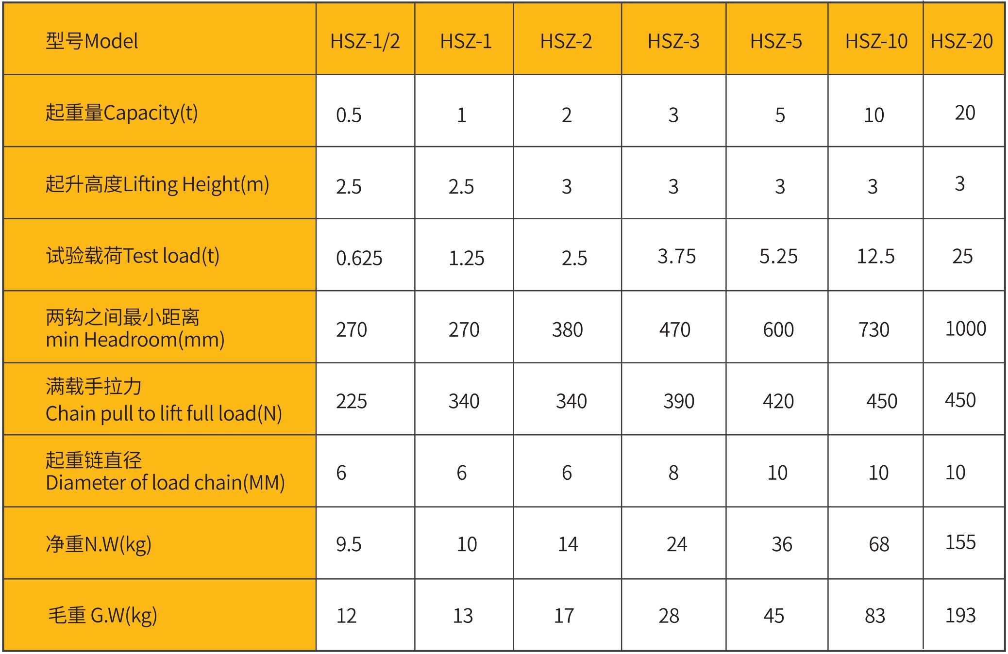 4. Compact Size:The HSZ hand chain hoist is small and lightweight, making it easy to carry and store.